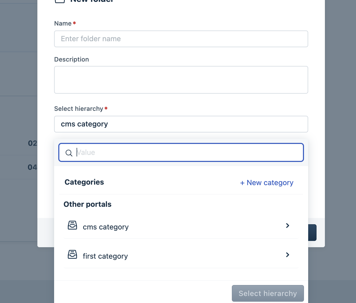 Cleanup portal related labels from folder modal/bulk update dropdown