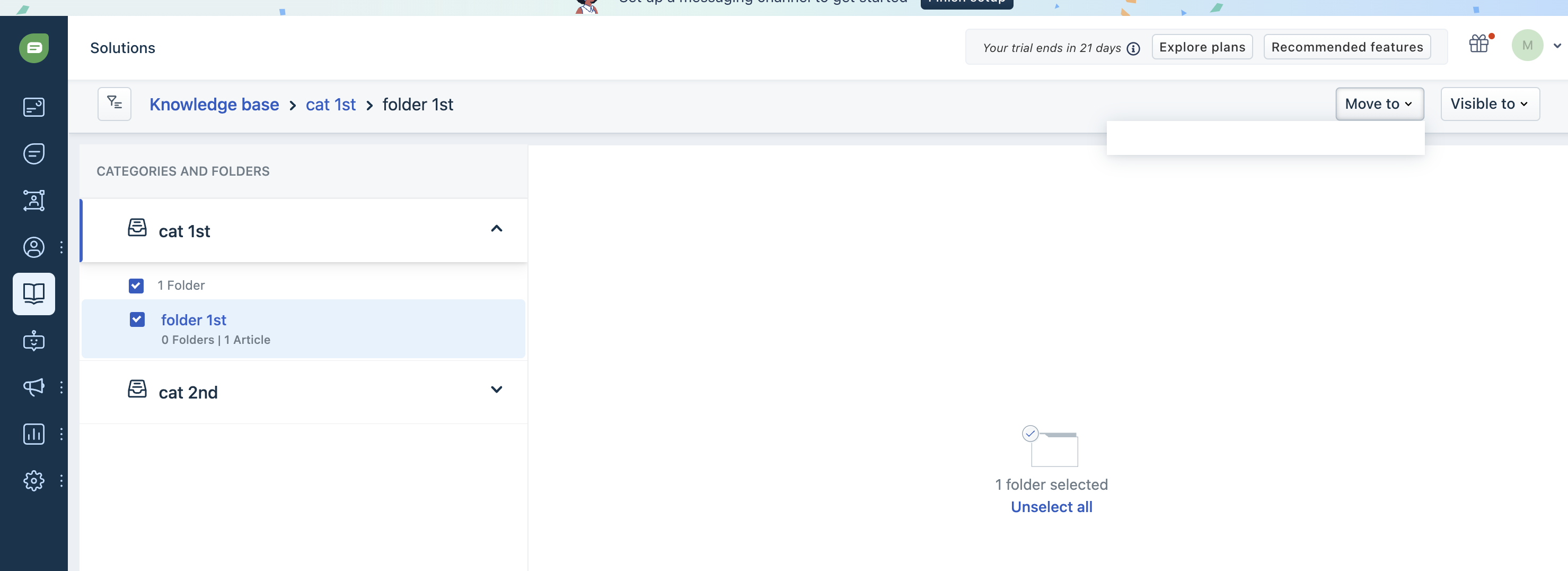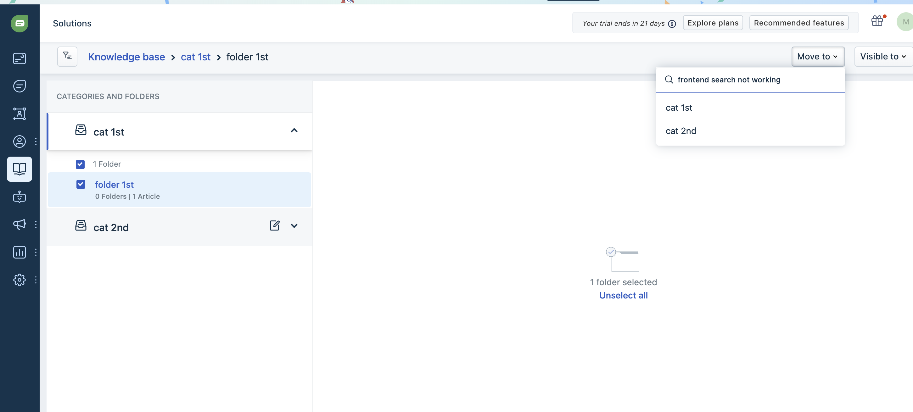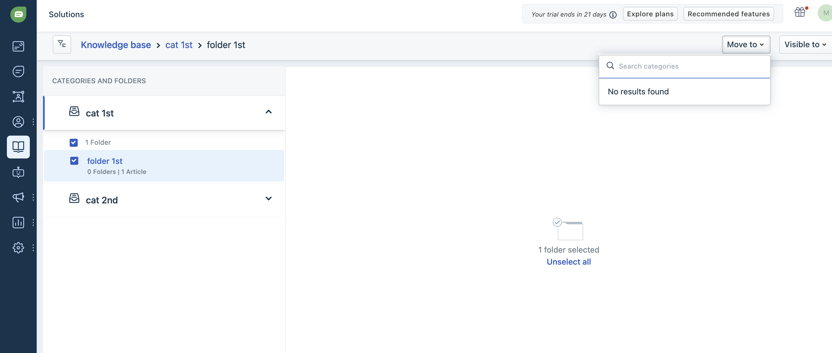 - On unchecking the folder, rechecking it again and clicking on 'Move to', there are no Categories shown in 'Move to' dropdown.