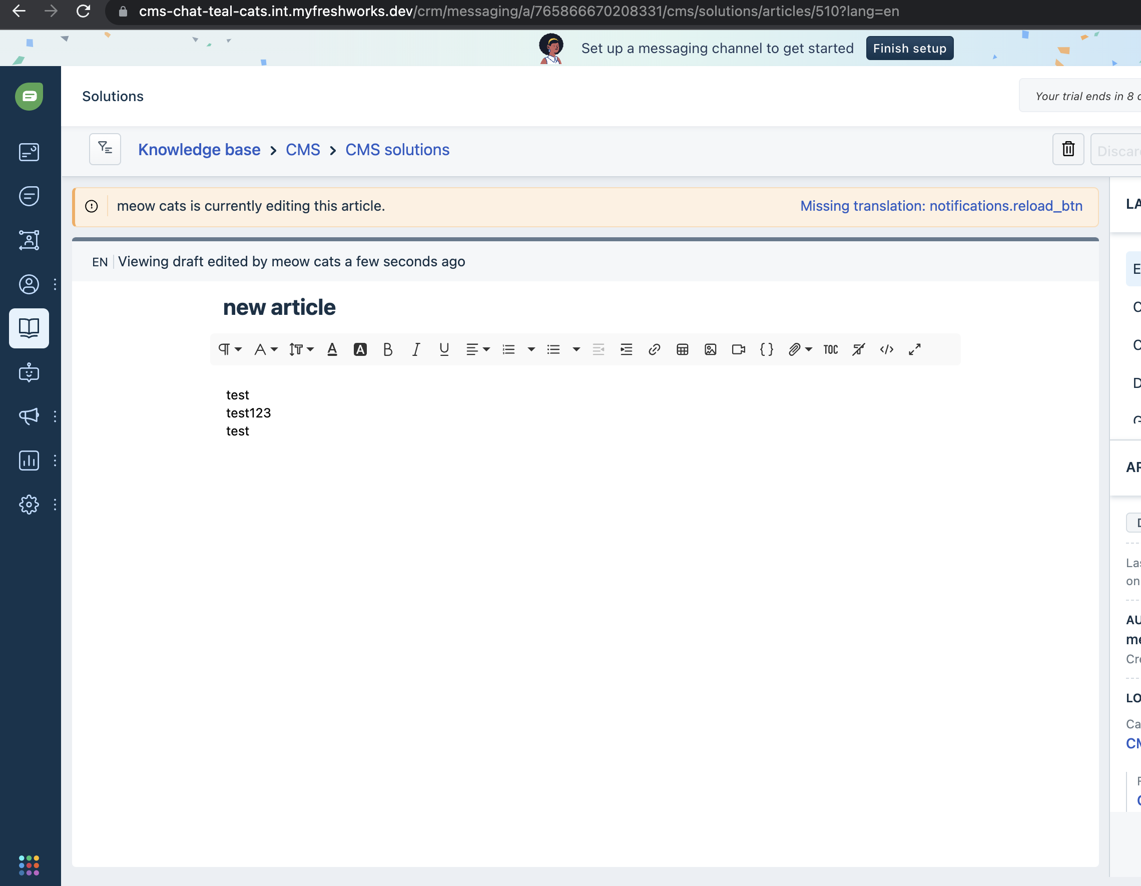 In locked article banner, getting missing translation for reload link