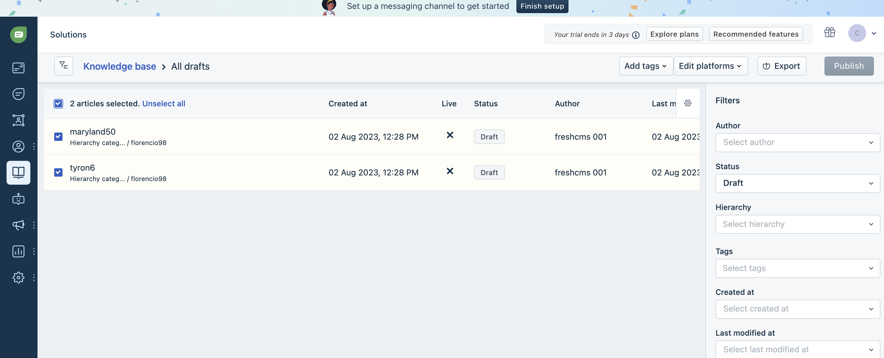 Bulk publish disabled in 'All drafts' articles list view